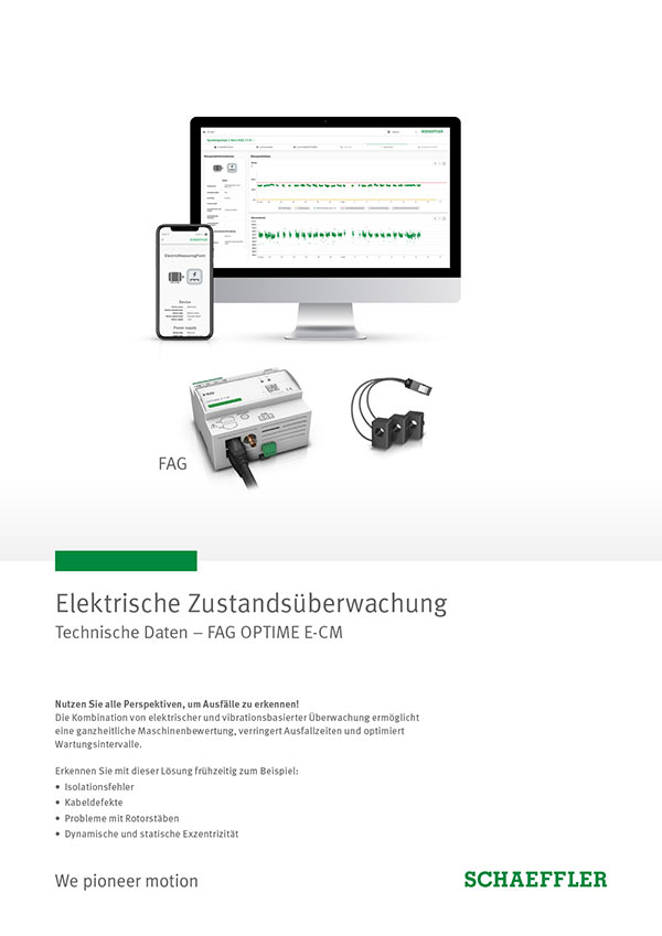 Finden Sie hier die wesentlichen technischen Informationen zur elektrischen Zustandsüberwachungslösung FAG OPTIME E-CM.
