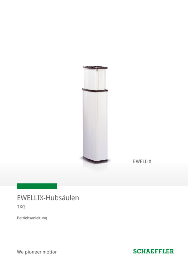 Die Anleitung beinhaltet Anweisungen zur Bedienung und Montage von EWELLIX-Hubsäulen EWELLIX TXG.