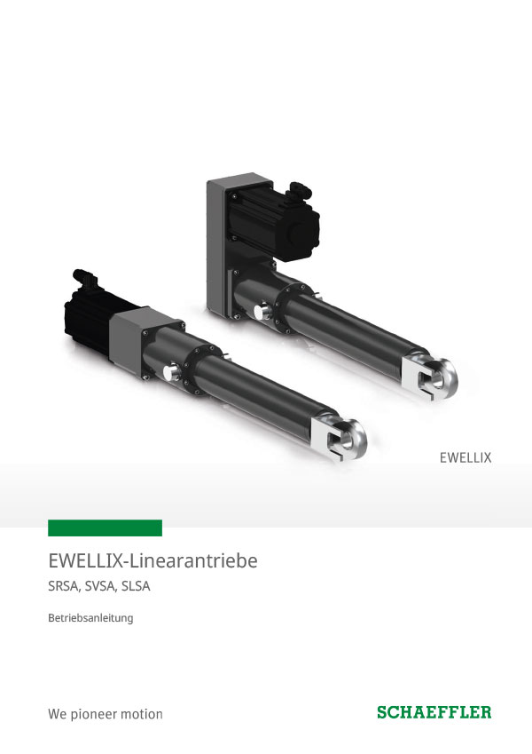 Die Anleitung beinhaltet Anweisungen zur Bedienung und Montage von EWELLIX-Linearantrieben SRSA, SVSA, SLSA.